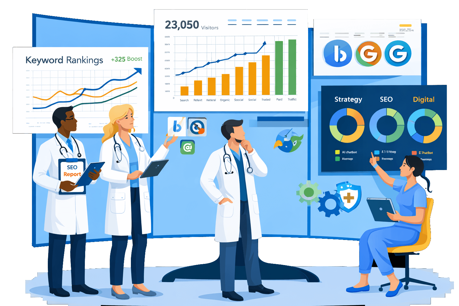 Throughout the engagement, our team provides strategic guidance, proactive communication, and ongoing optimization — adapting as search behaviors evolve so your practice remains discoverable, trusted, and positioned for long-term patient acquisition.